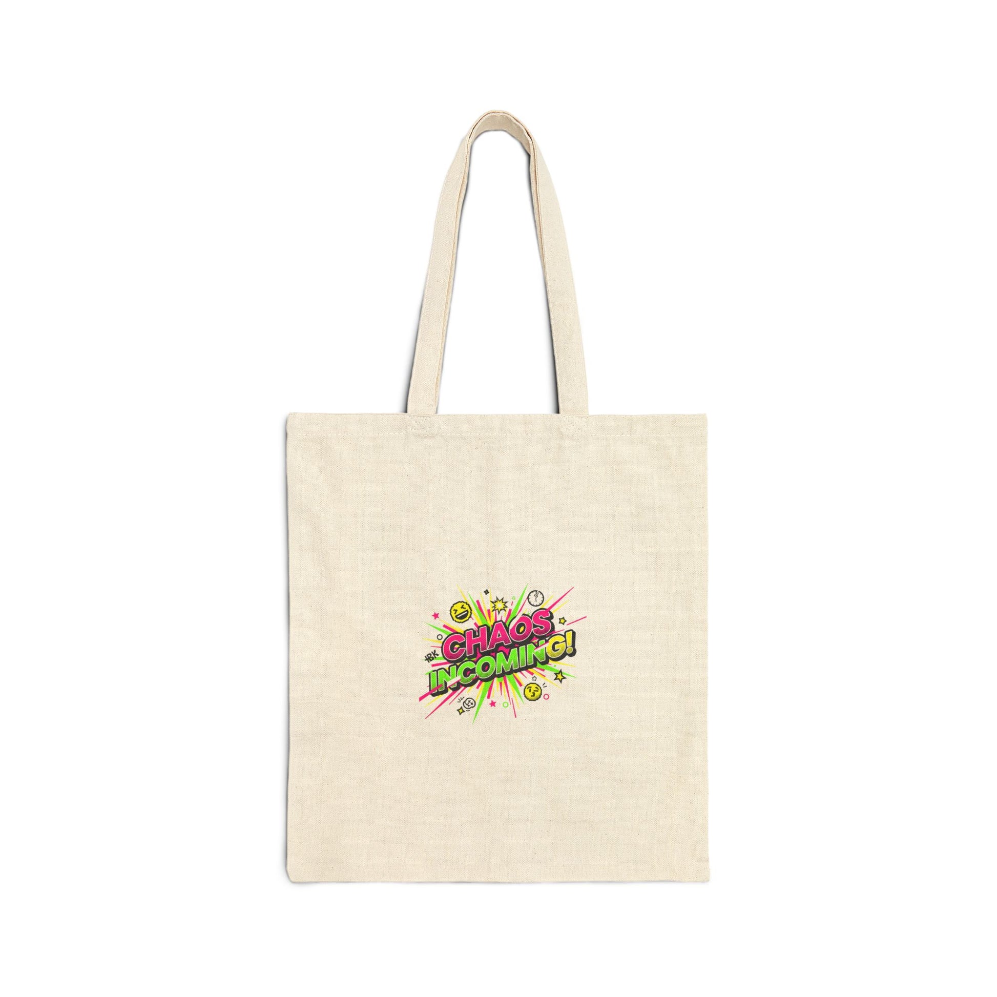 Chaos Incoming Tote | Slogan & Glitch Graphic, Meme Phrase Canvas